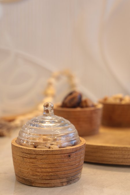 علب تقديم مع غطا خشب مع نقشة غصن الزيتون
