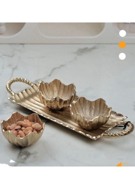 طقم سكريات خشب مع قاعدة وغطا ذهبي