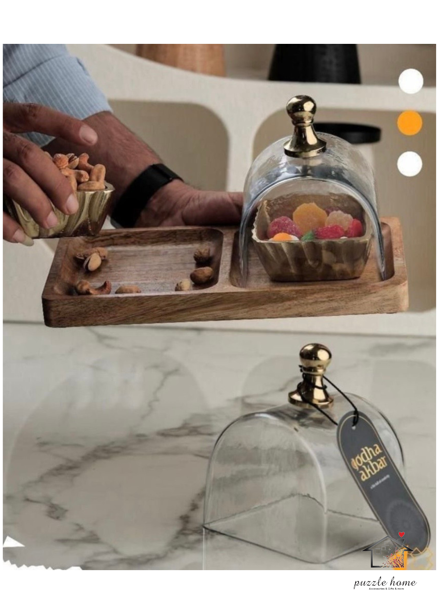 مضيفة قاعدة خشب مقطعة مع صحون وغطا
