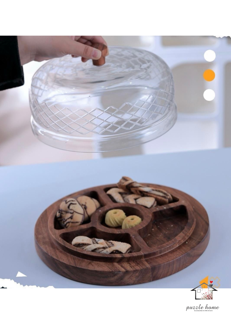 مضيفة خشب دائرية مقطعة مع غطا قزاز