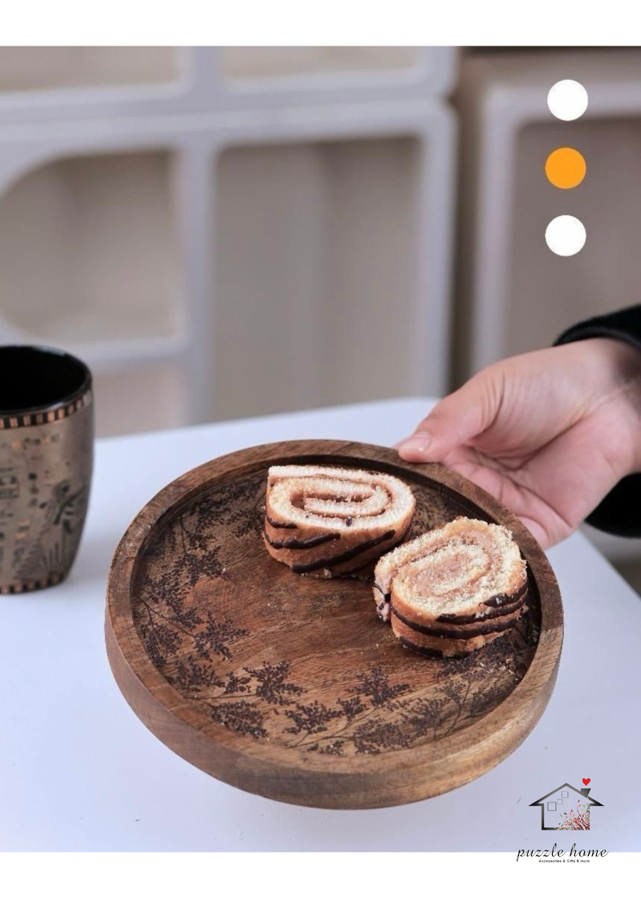 صحن تقديم دائري مع زخرفة شجر الزيتون