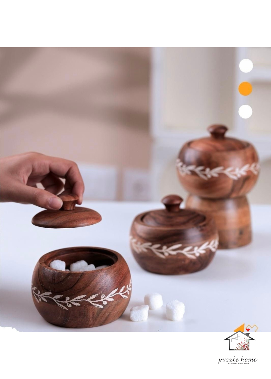 علب تقديم مع غطا خشب مع نقشة غصن الزيتون