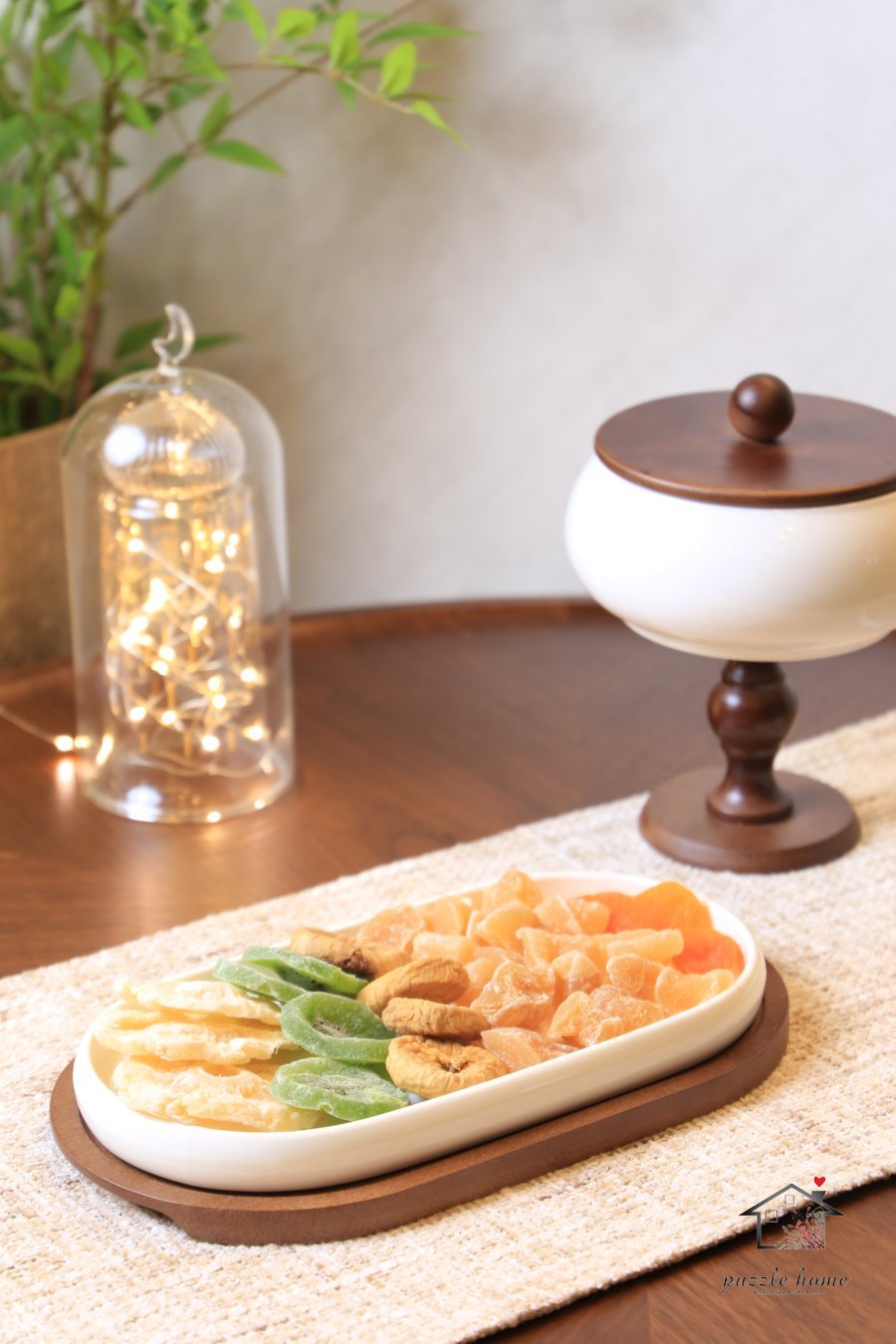 صحن بورسلان بيضاوي 17*28سم قاعدة خشب بامبوو