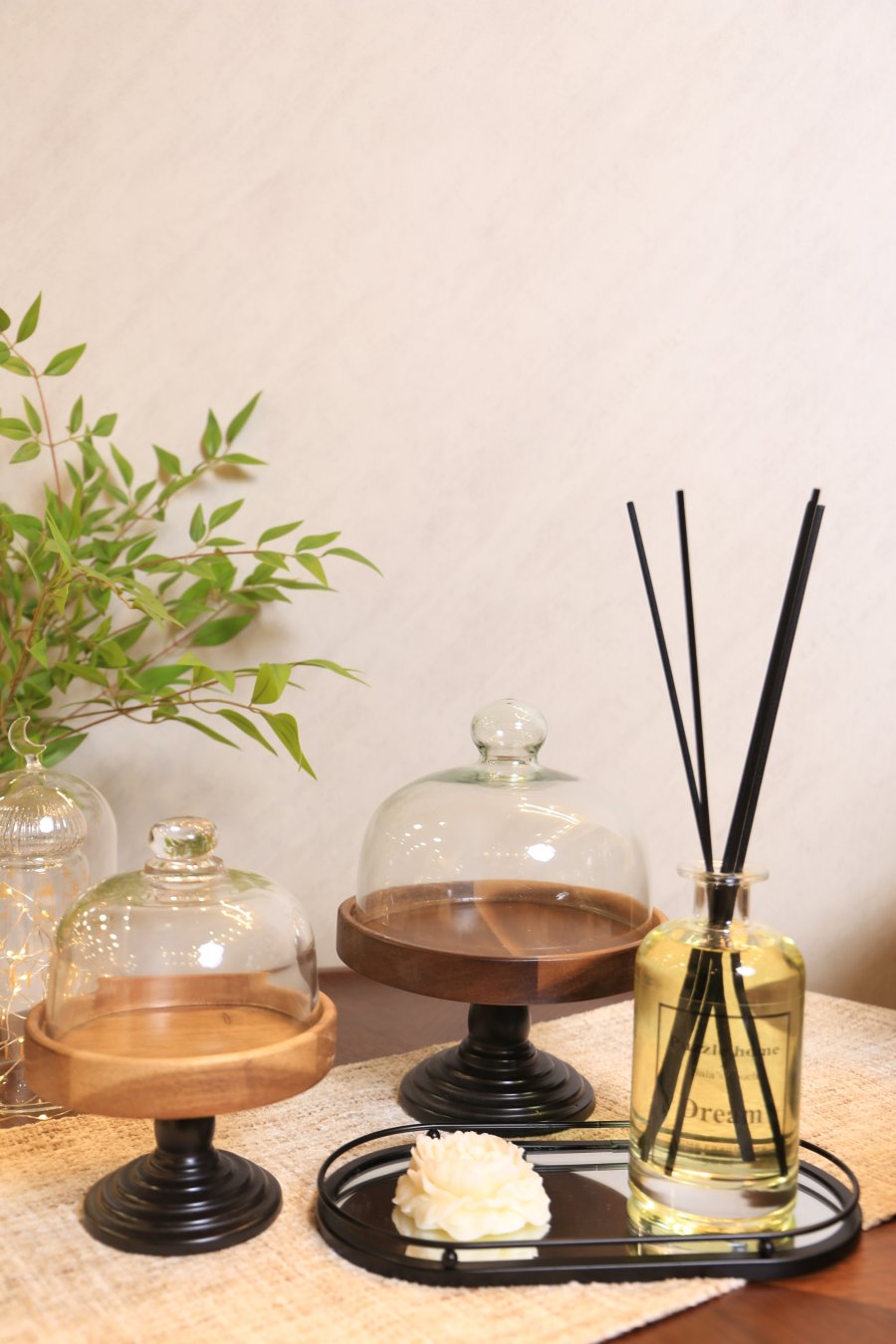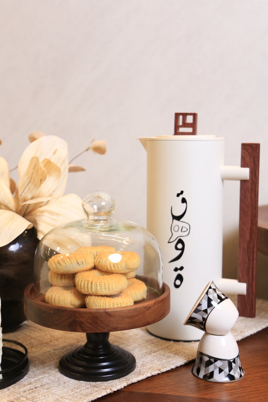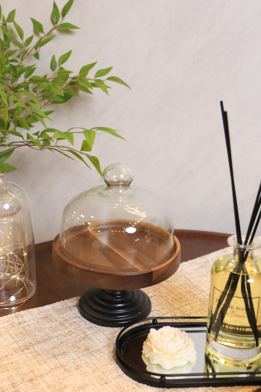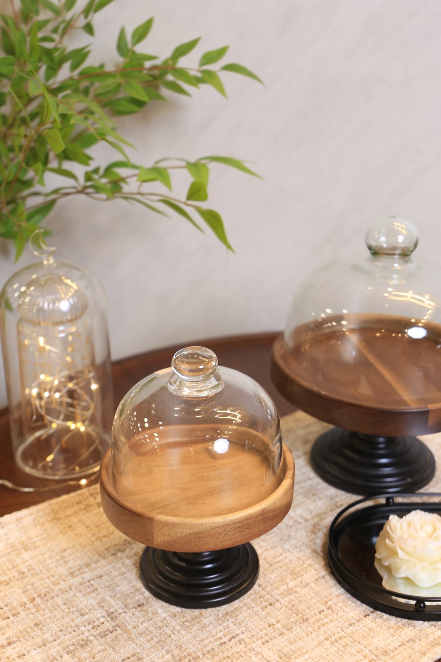 مضسفة كعك خشب برجل حديد وغطا زجاج