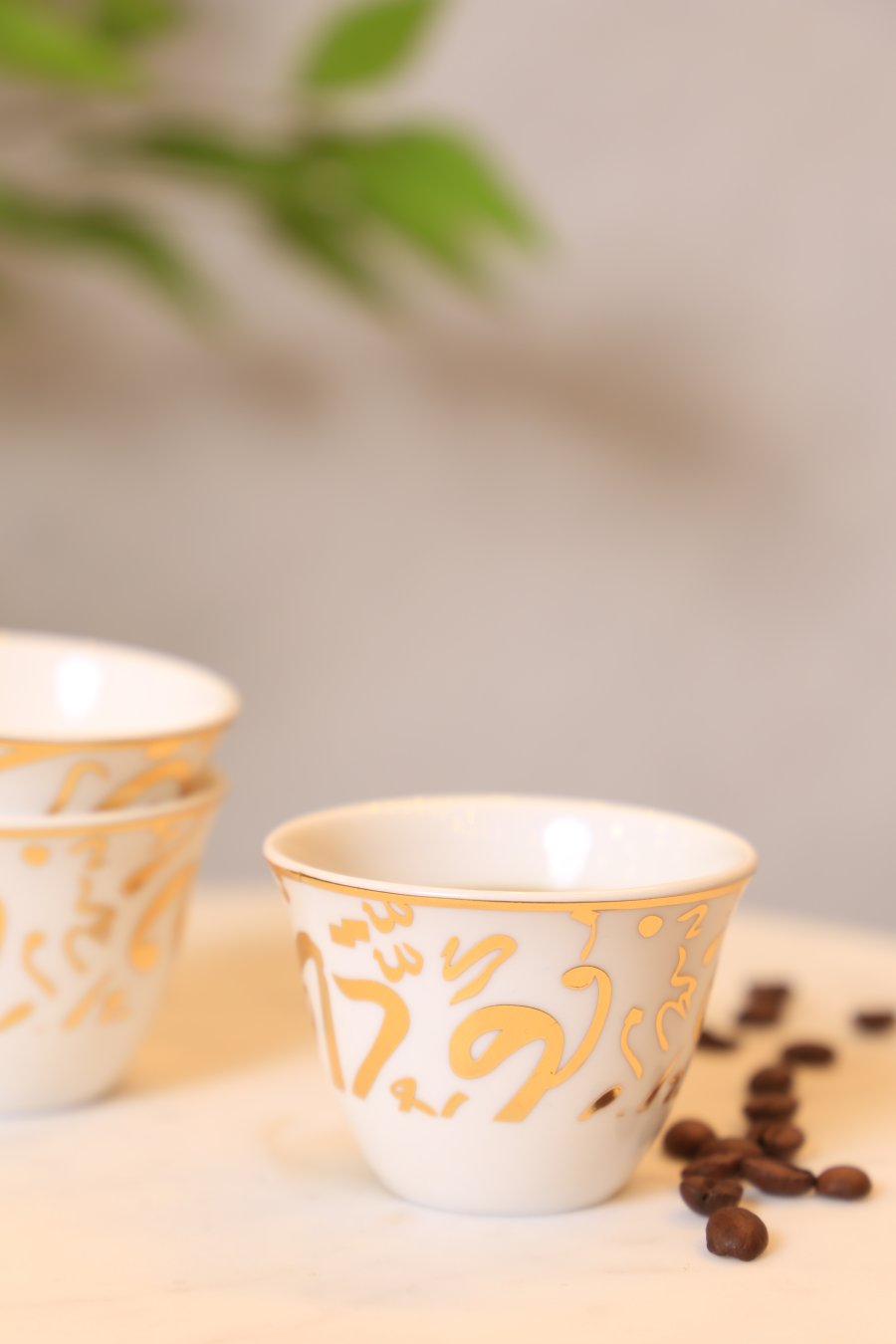 فناجين قهوة سادة 12 ابيض مزخرف ذهبي