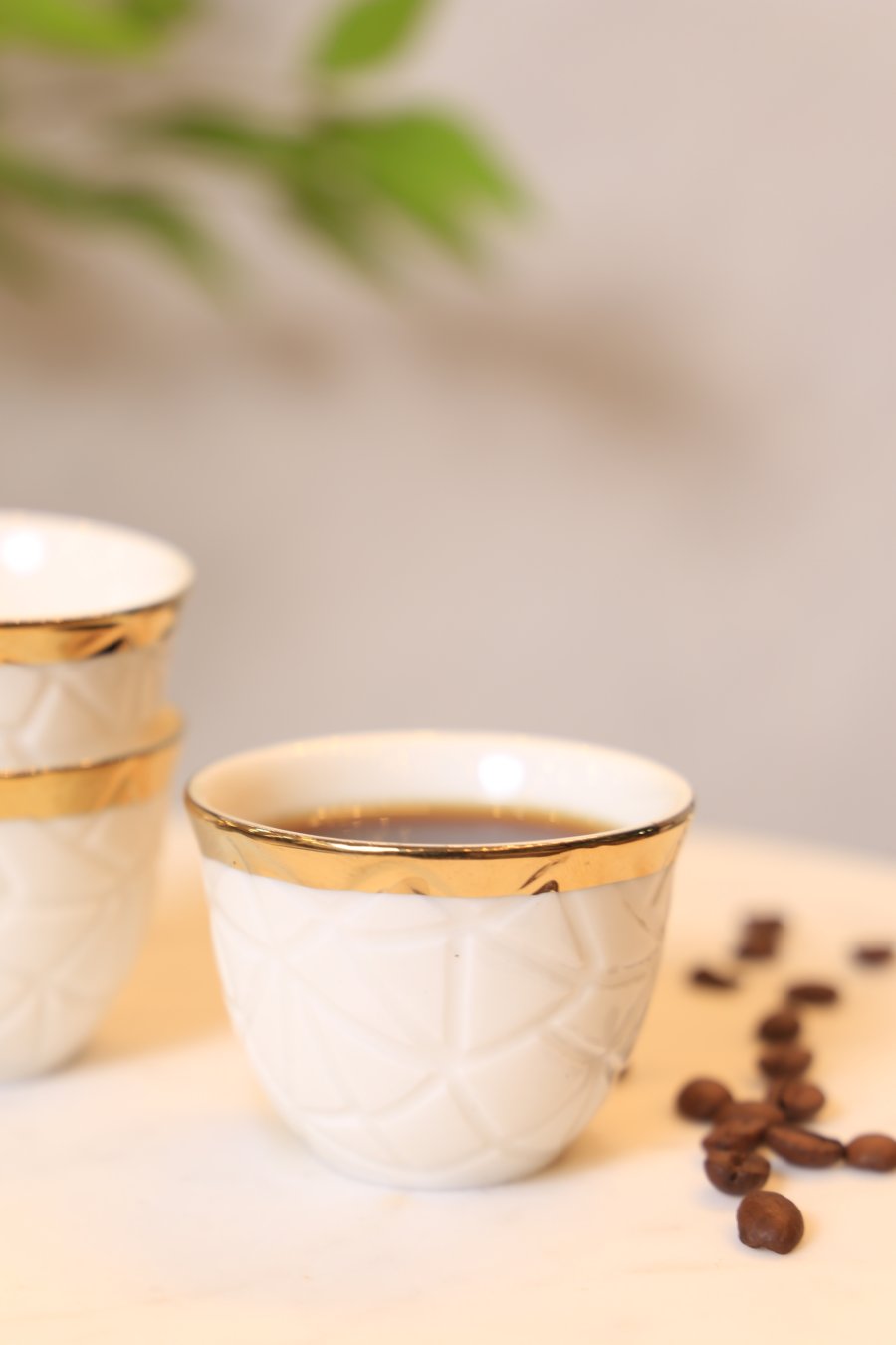 فناجين قهوة سادة 12 ابيض حز ذهبي