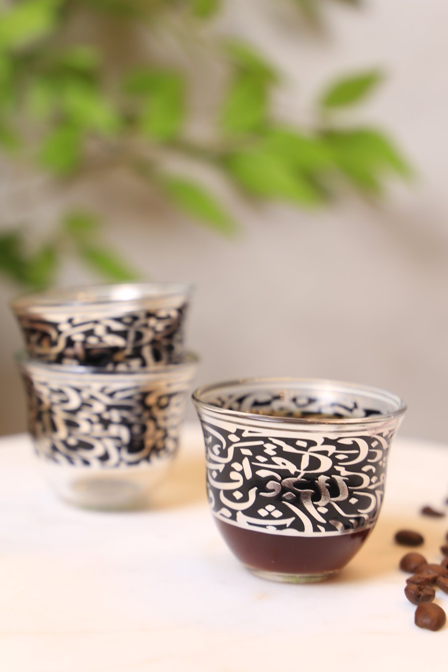 فناجين قهوة سادة 12 شفاف مزخرف اسود