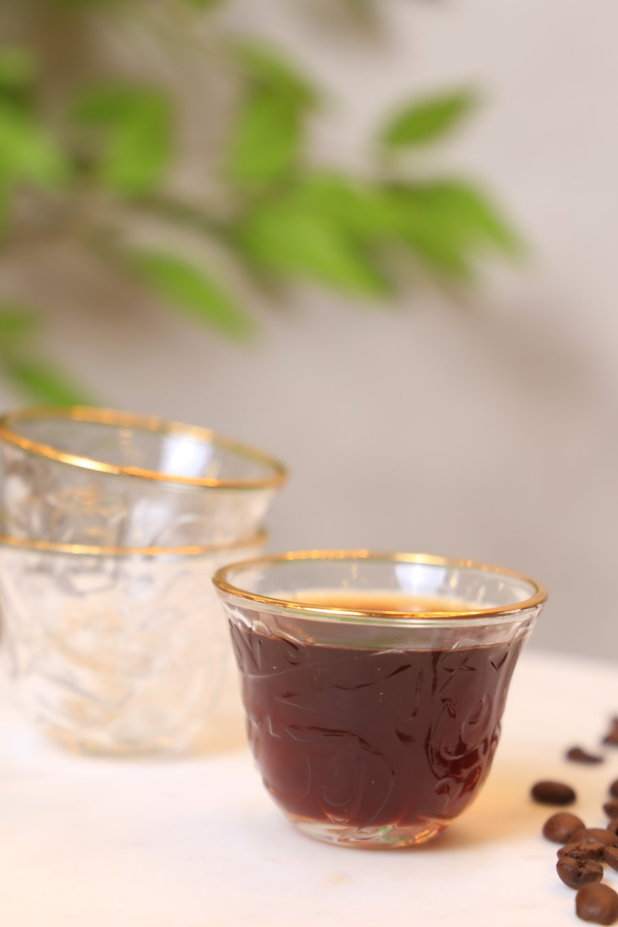 فناجين قهوة سادة شفاف مزخرف حيف ذهبي