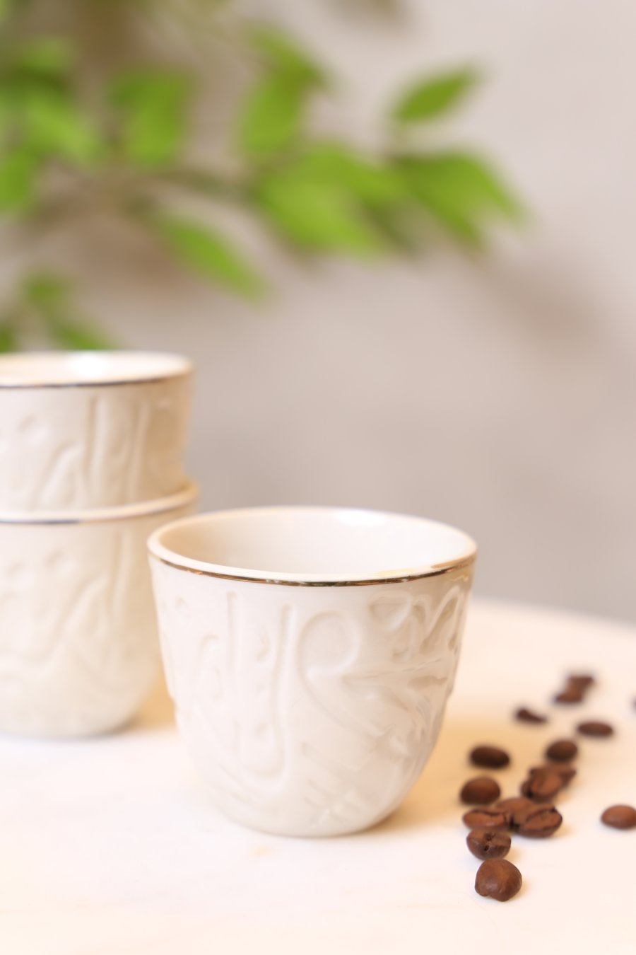 فناجين قهوة سادة 12 بورسلان ابيض مزخرف