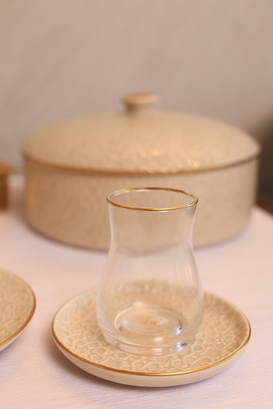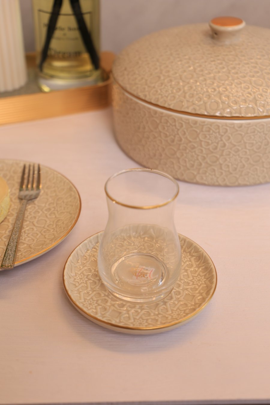 طقم 6 كاسات شاي زجاج سادة مع صحن بورسلان