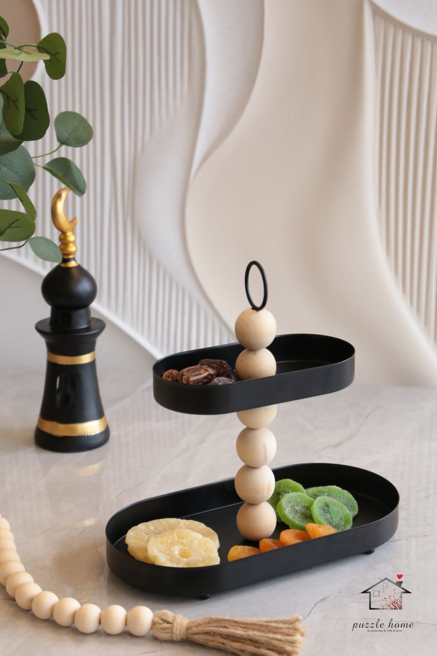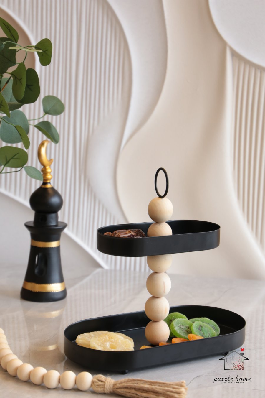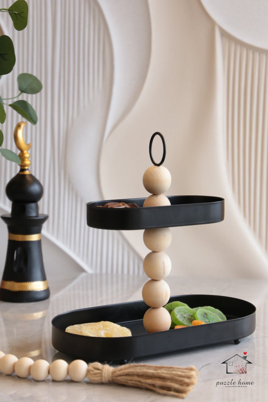 مضيفة طابقين حديد اسود مع طابات خشب مسبحة